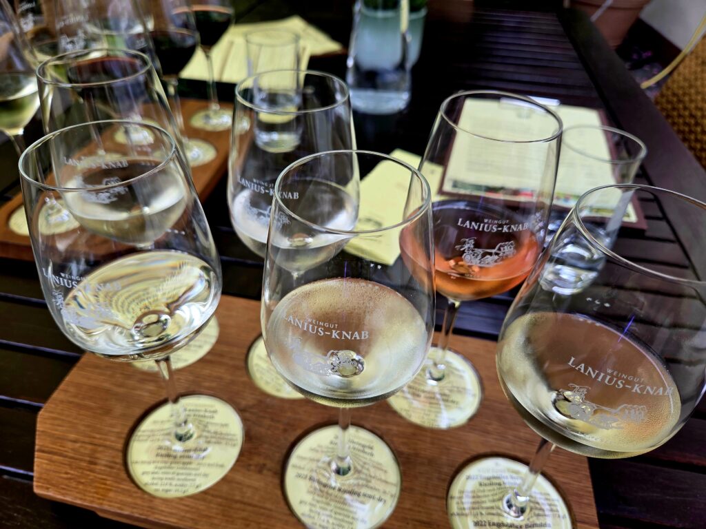 Now for the wine tasting! The husband and I each had a flight of six wines to taste, with a mixture of red and white. The wines we tried were amazing. So delicate in flavor, and so much diversity of wine styles! Jorg worked with our palates to determine what he thought we should try and he was fantastic! In my flight, I loved the Riesling! (Germany is renowned for its high-quality white wines, particularly those made from the Riesling grape)