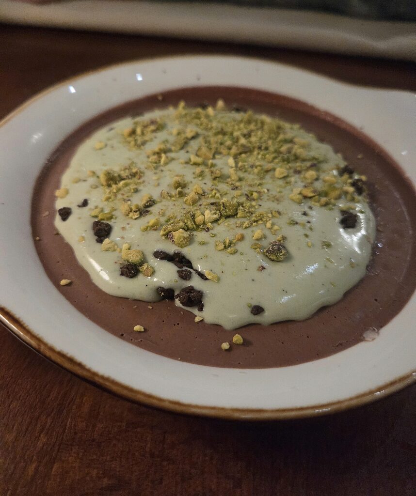 Moving on to dessert! The dessert was ordered off of the special’s menu. It was a chocolate and pistachio panna cotta. What a great combo! Loved the flavor profiles of this dessert. The pistachio provides a distinct nuttiness and crunch to the gentle yet luxurious sweetness of the panna cotta. The addition of the chocolate provides a richer, slightly more intense flavor to this dish.